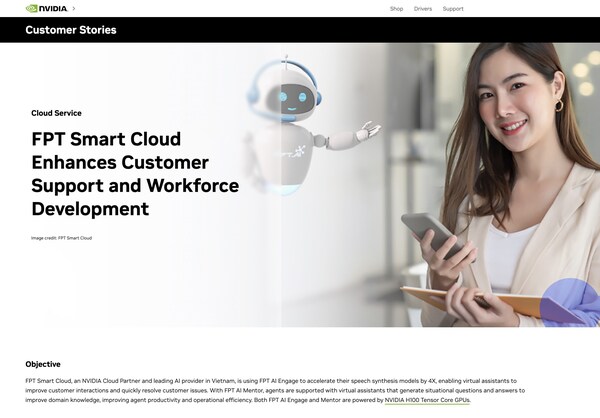 The success story of FPT Smart Cloud was featured by NVIDIA on homepage