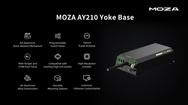 The MOZA AY210 Yoke Base delivers 9Nm of torque and 210N of push force,with a 150mm travel range for ultra-realistic flight dynamics. Customizable through MOZA Cockpit software and featuring flexible mounting options,it offers an unparalleled experience for flight sim enthusiasts.