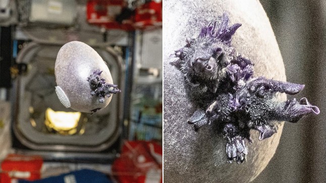 Strange 'alien-like' purple growth sprouts from a potato grown on the ISS