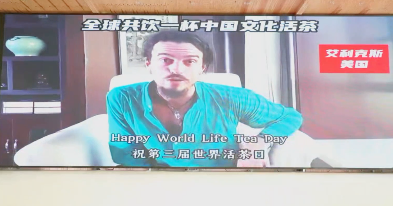During the event, there are also a number of interactive links interspersed. International friends from all over the world sent congratulatory through video connected microphone, expressing their appreciation and support for Chinese living tea culture.