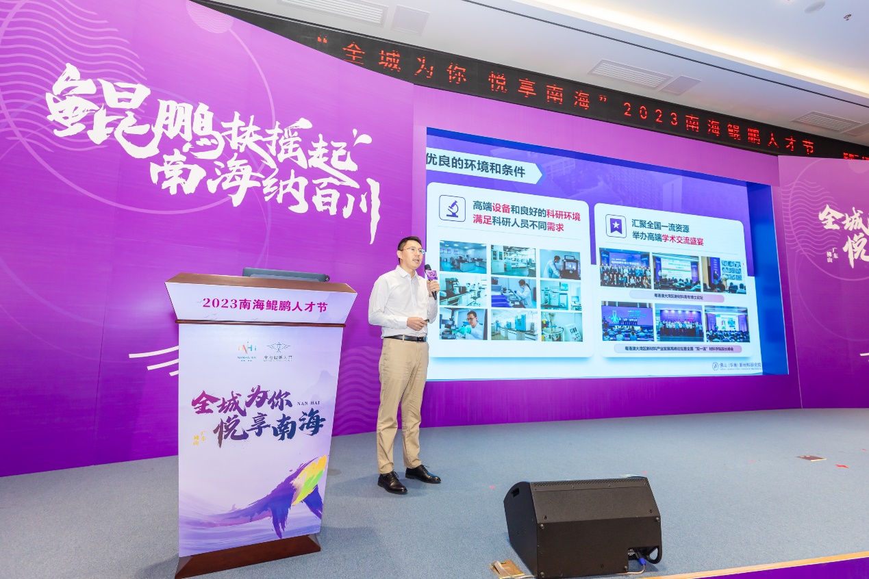 Nanhai city’s environment and key industries were also promoted at the activity. As a high-level talent coming from overseas and firmly choosing Nanhai, Lin Bin, General Manager of Guangdong Yuanxin Regenerative Medicine Co., Ltd, told and shared his entrepreneurial experience and journey on the spot; Jihua Laboratory, Xianhu Laboratory, South China New Materials Research Institute and other innovation platforms threw "embroidered balls" to overseas talents; Zhongyan Teco, Star in the creation of representative industrial parks, put forward sincere conditions of entrepreneurial land, entrepreneurial services and talent apartments, hoping that the talents will settle down and develop.