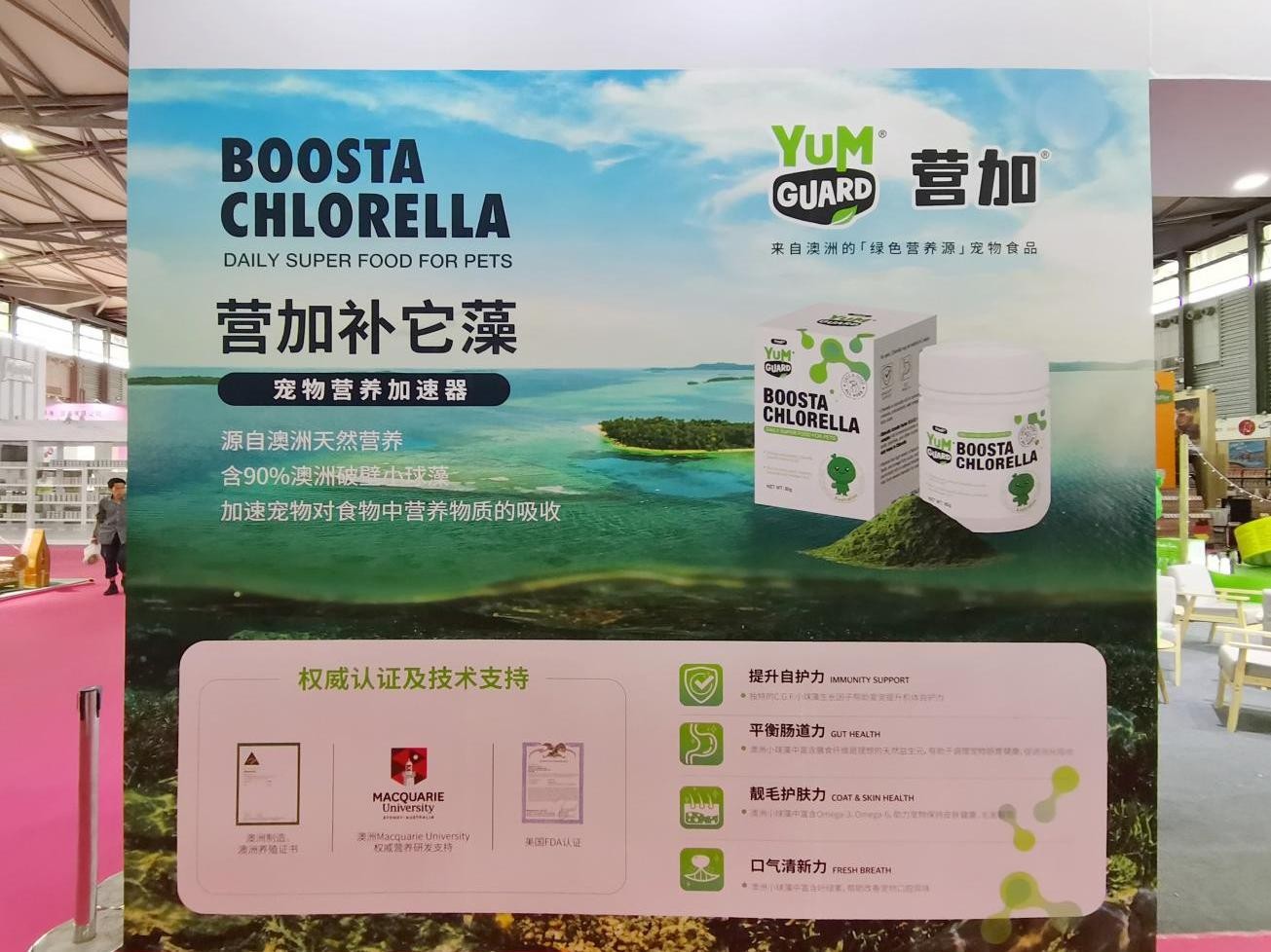 The new YumGuard Boosta Chlorella is a natural pet nutritional accelerator originating from Australia. Boosta Chlorella features the distinctive Australian Chlorella, containing abundant protein and a variety of nutrients, as well as essential elements for pet growth, including Vitamin B12, Vitamin C, and chlorophyll. Serving as an ideal natural prebiotic, chlorella can stimulate the growth and reproduction of beneficial gut bacteria, aiding in pet digestion and absorption.