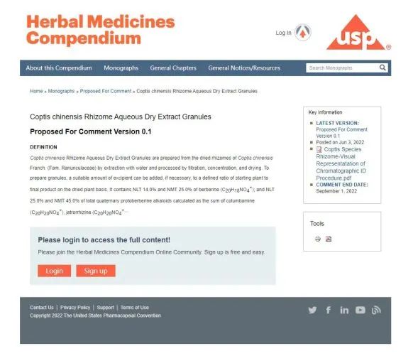 US Pharmacopoeia Standards for Coptidis Coptidis Extract Granules by Tianjiang Pharmaceutical